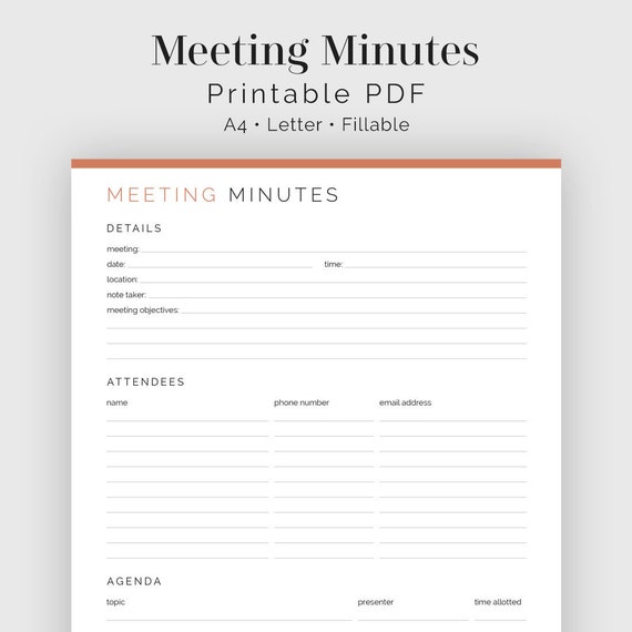 Meeting Minutes Fillable Business Planner Meeting Management Meeting Notes Printable Pdf 3 Colours Instant Download