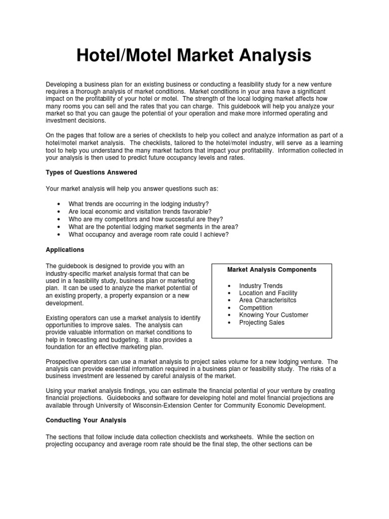 Hotel Marketing Plan Sample Market Analysis Motel