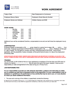 Nanny Agreement Worksheet Printable Pdf Sheet