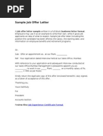 Sample Job Offer Letter