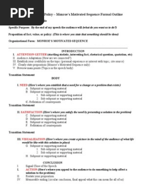Persuasive Speech Outline Monroe S Motivated Sequence